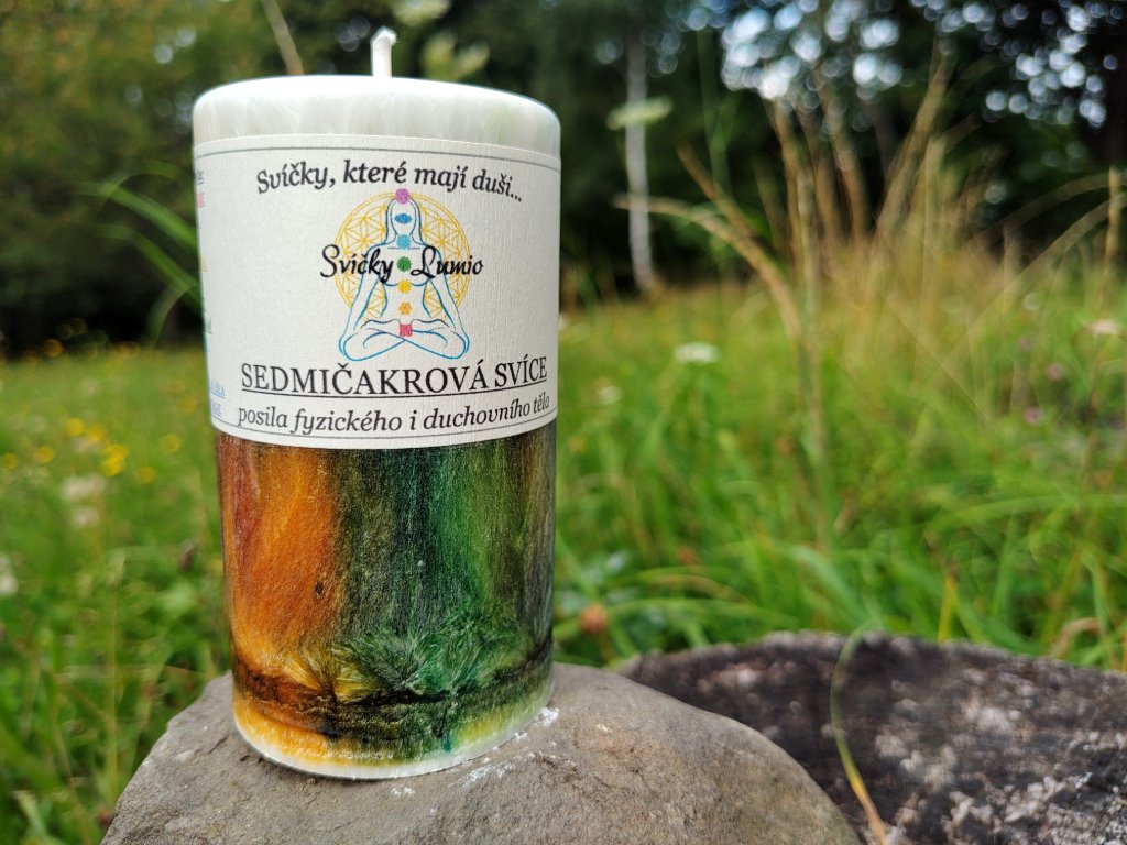 Sedmičakrová svíce působí svým vlivem na prostor, kde je pálena.