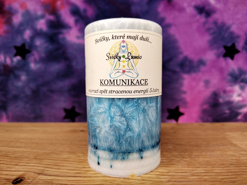 Tato tyrkysová čakrová svíce působí svým vlivem na prostor kde je pálena.
