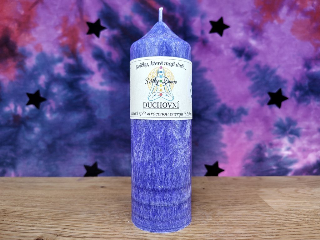 Tato fialová čakrová svíce působí svým vlivem na prostor kde je pálena.