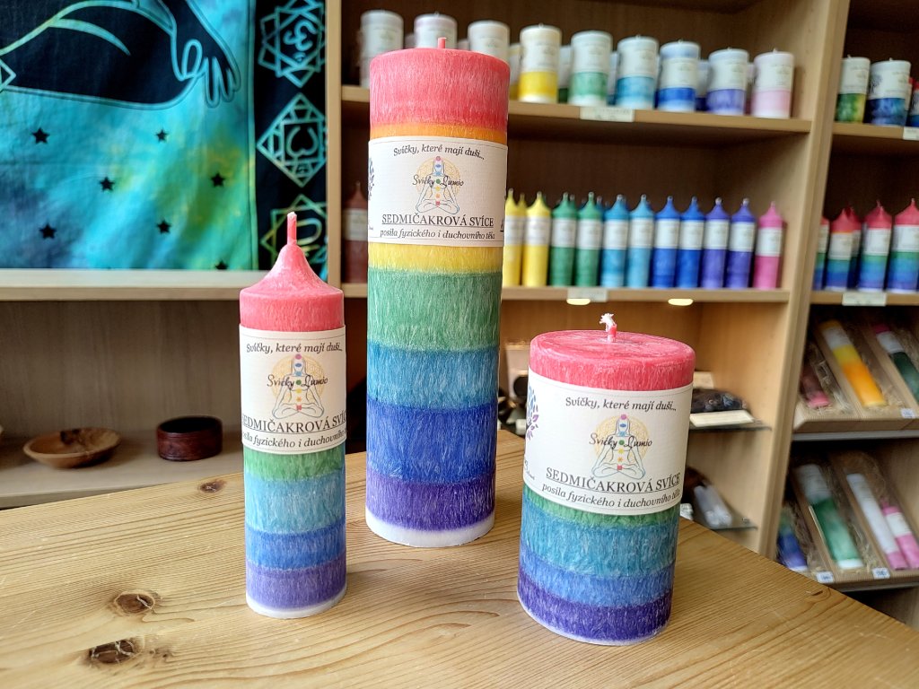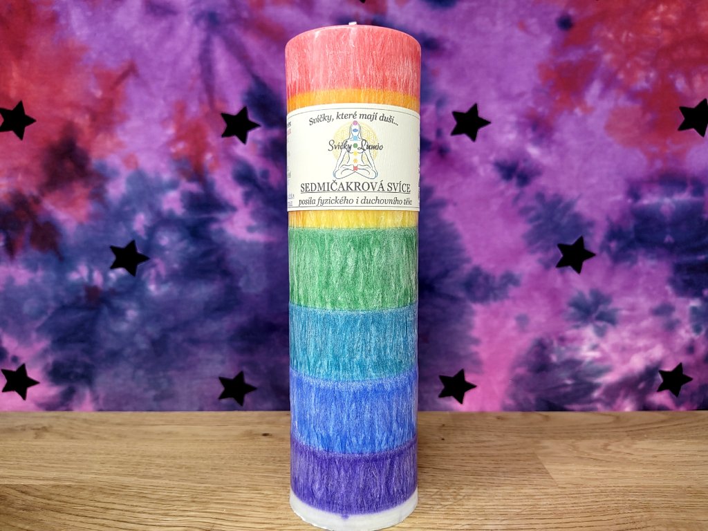 Tato sedmičakrová svíce působí svým vlivem na prostor, kde je pálena.