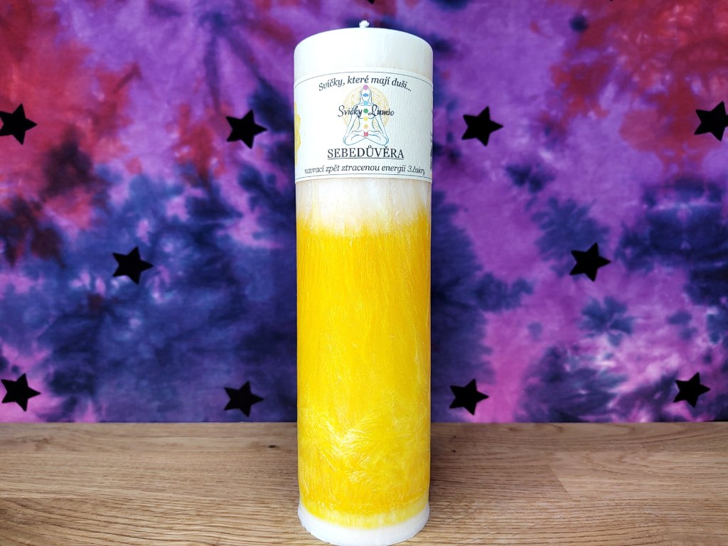 Tato žlutá čakrová svíce působí svým vlivem na prostor, kde je pálena.