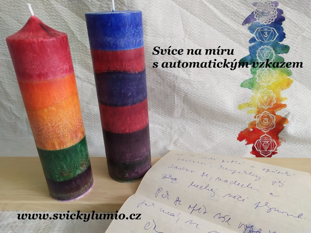 Svíce na míru: prosím mějte na vědomí, že doba vyrobení a doručení těchto svící záleží na jejich počtu, skladbě a množství objednávek před Vámi. I automatické vzkazy nejdou psát každý den, vhodné jsou tak max. 2 dny v týdnu. Proto nejsme schopni zaručit jakýkoliv časový interval, (hlavně vánoční období) neboť výroba je velmi časově náročná.