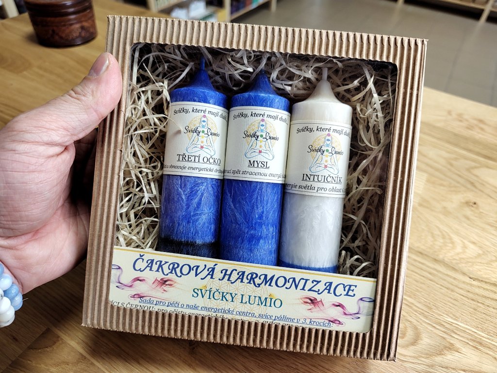V této sadě naleznete svíce k celkové podpoře 6. čakry