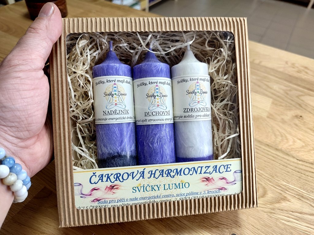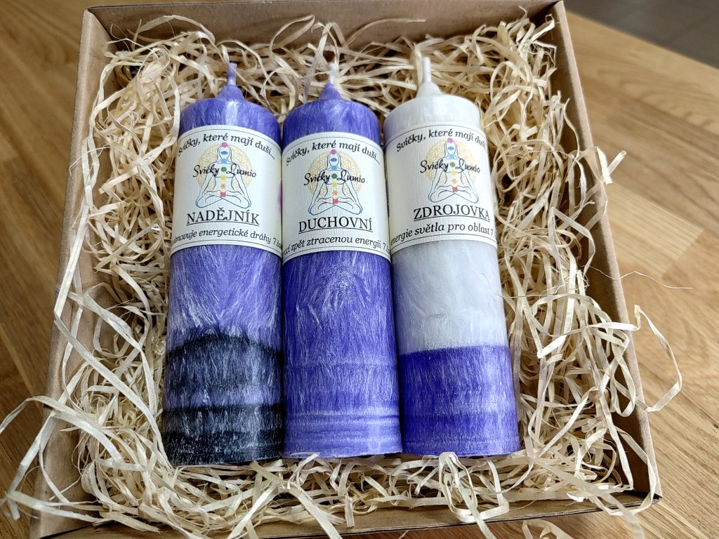V této sadě naleznete svíce k celkové podpoře 7. čakry