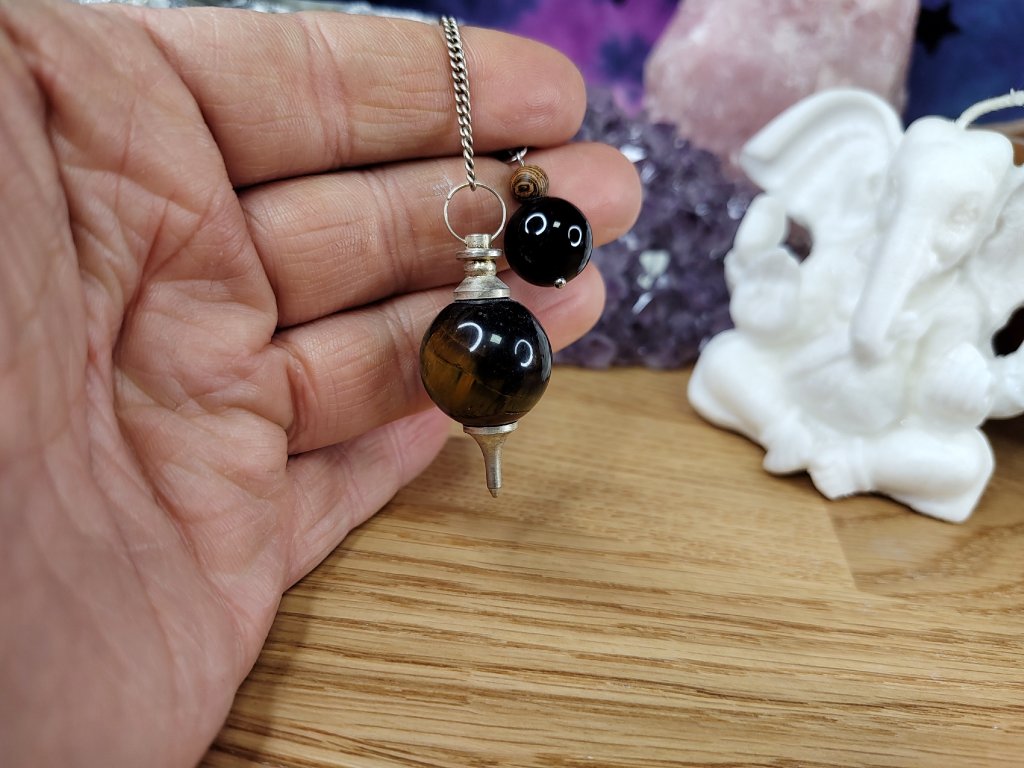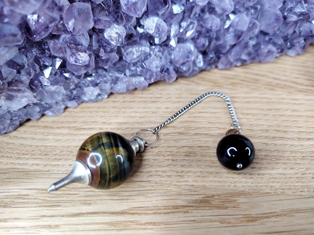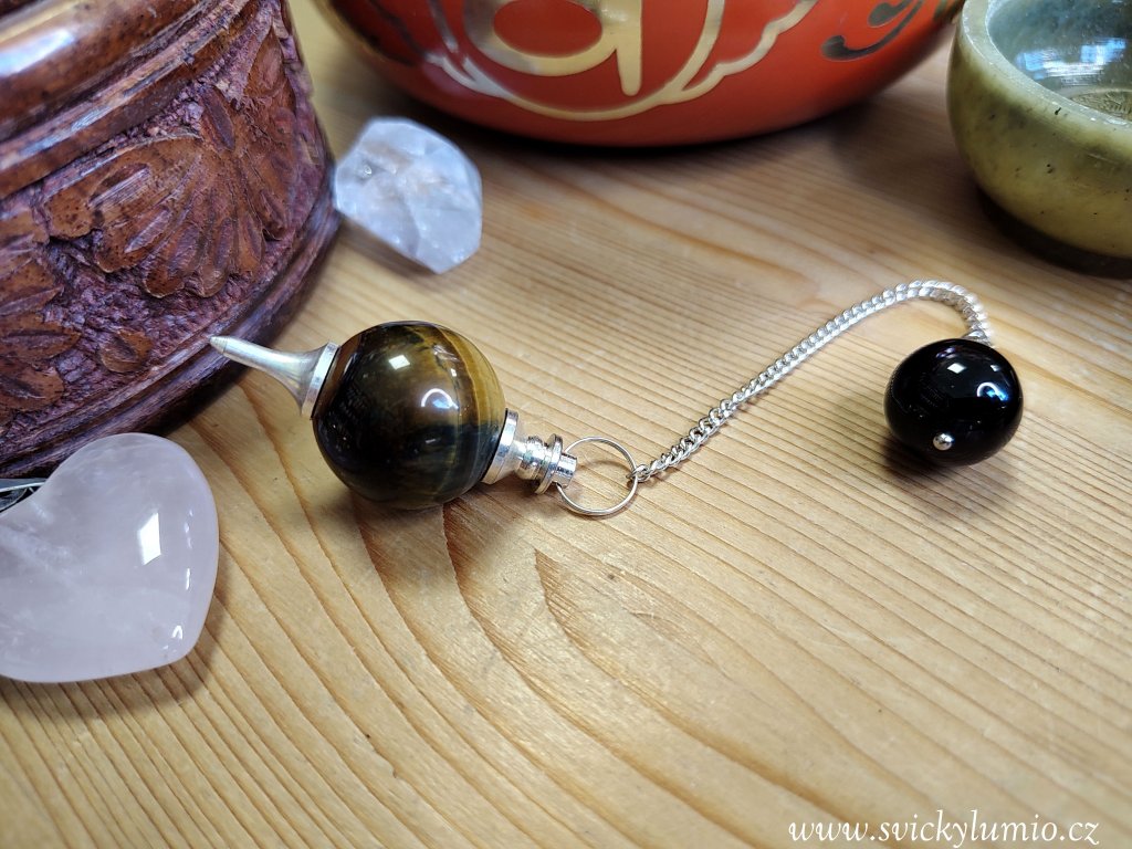 Kyvadlo siderické TYGŘÍ OKO + DUB + ČERNÝ ONYX