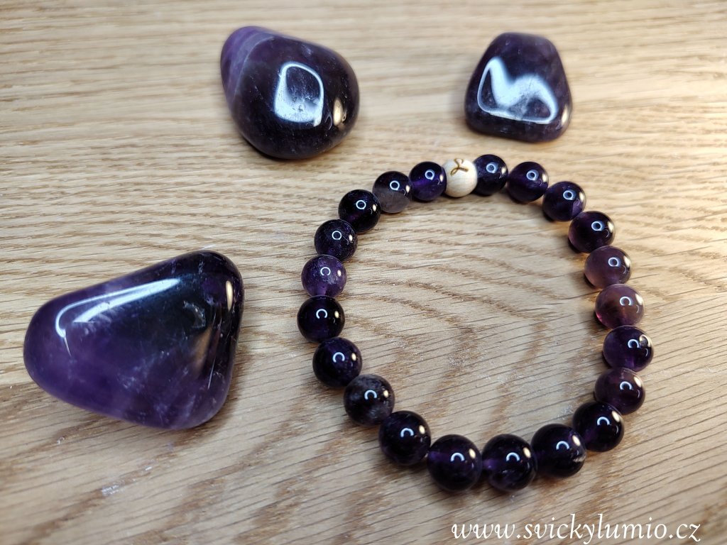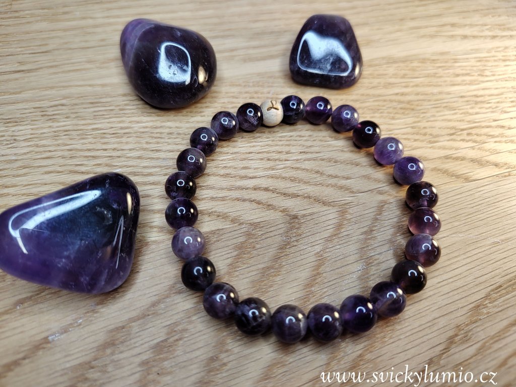 Ametyst je kámen duchovní energie, a proto při nošení tohoto náramku mohou být podpořeny např. tyto vlastnosti: intuice, očista, meditace, vize, poznání, moudrost