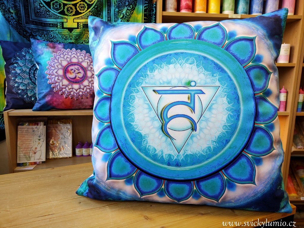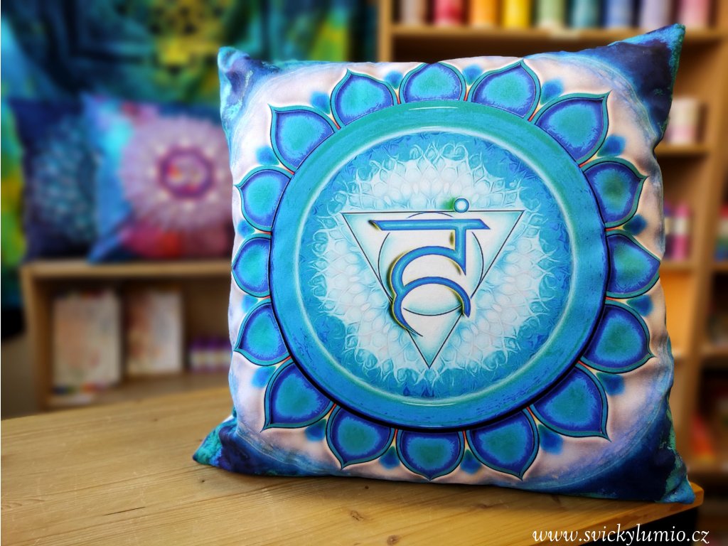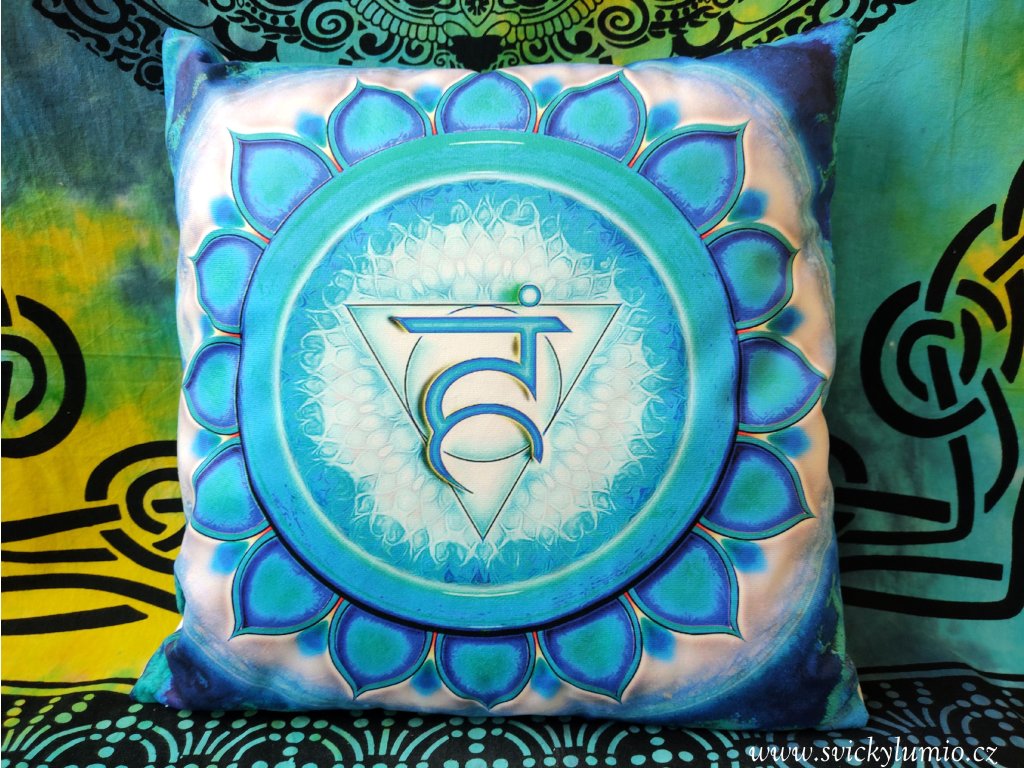 Dekorační povlak na polštář s motivem 5.ČAKRA, se postará o zpestření vašeho domova.