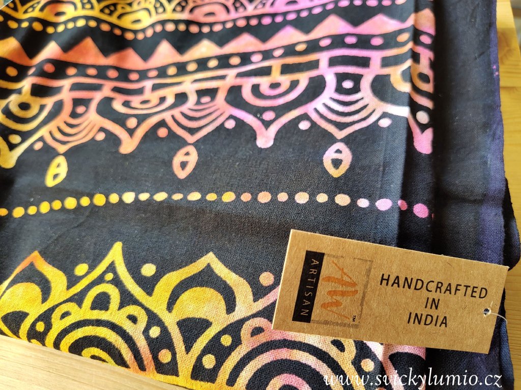 RUČNĚ VYROBENO V INDII / KAŽDÝ ŠÁTEK JE ORIGINÁL!!! foto je pouze ilustrativní... Berte, prosím, také v úvahu drobné nedokonalosti potisku, u výrobků z Indie je to běžné.