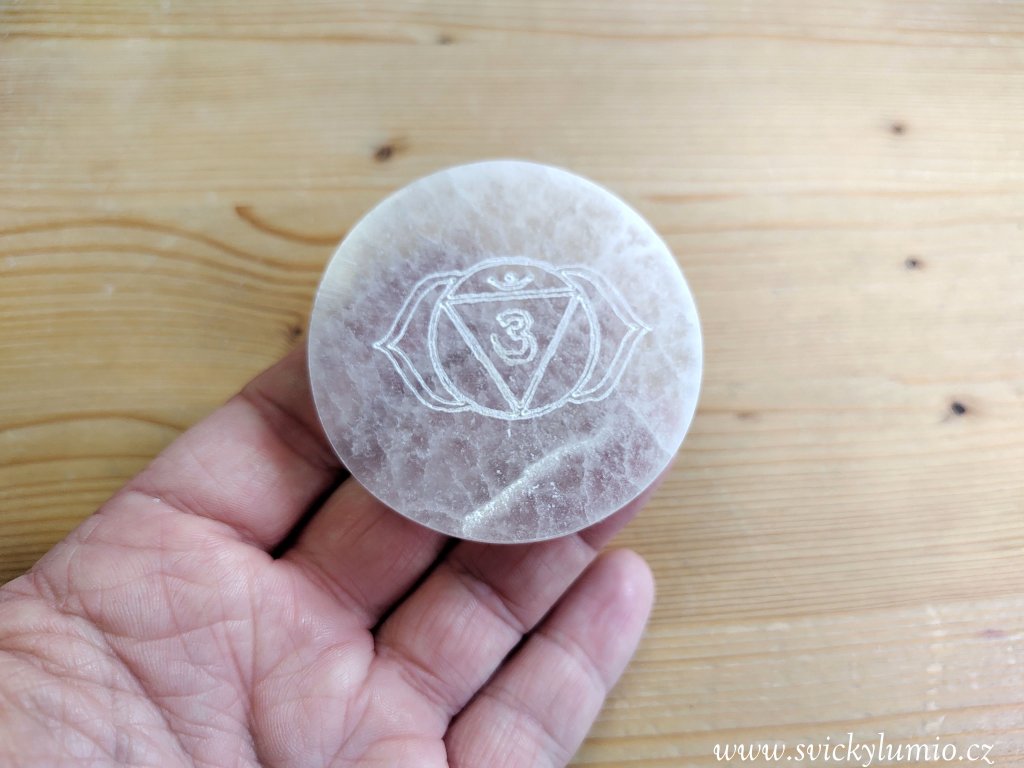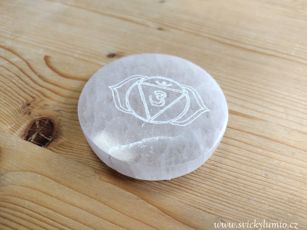 Selenitový podtácek 6.ČAKRA 6 cm
