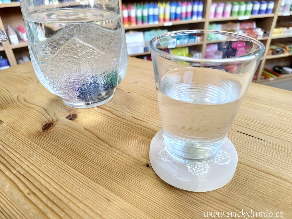 Sklenici položíme na Selenitový blok a necháme nabíjet.