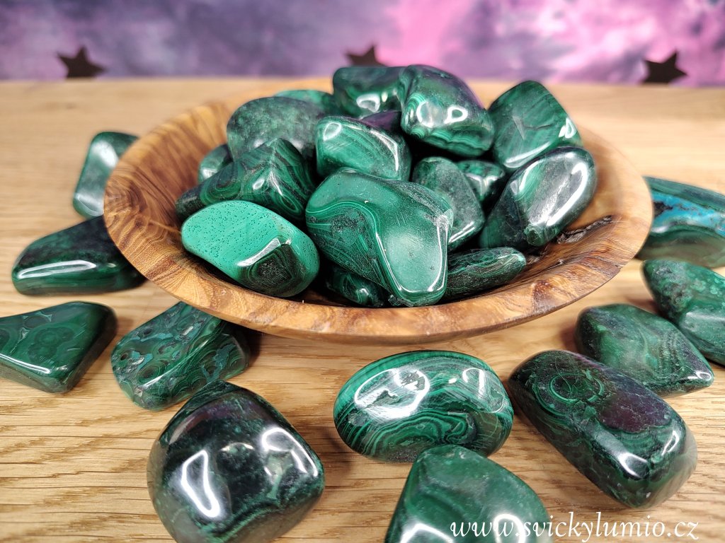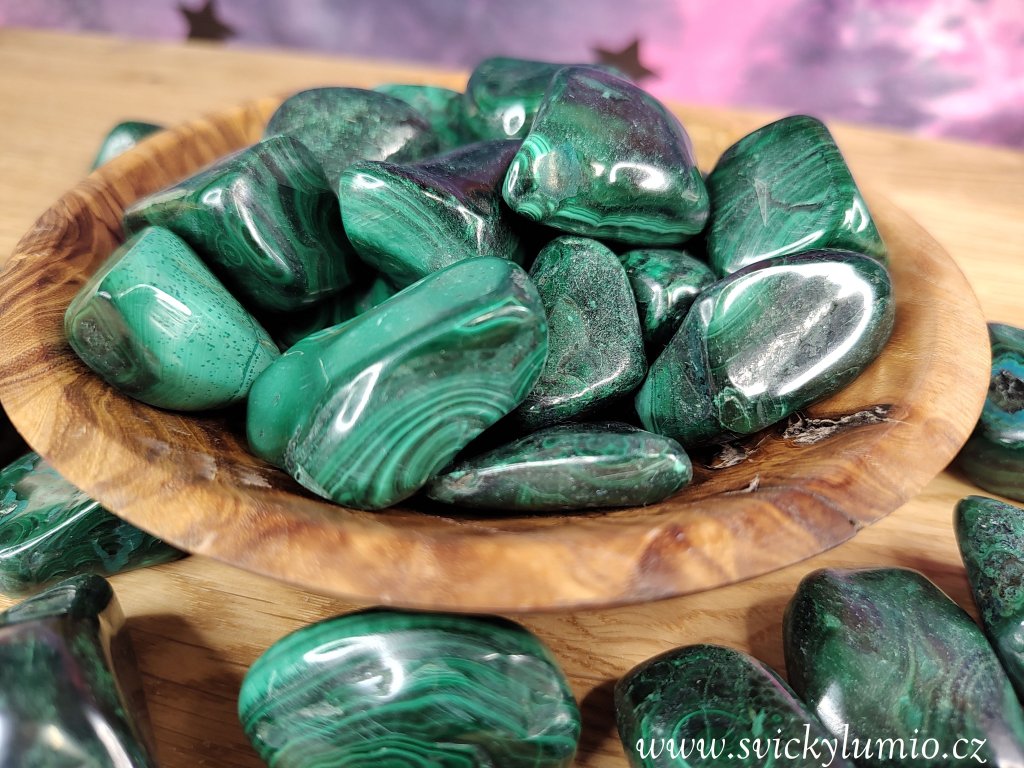 Malachit přináší svému nositeli: pomoc v citových záležitostech, harmonii, trpělivost, kreativita, intuici...