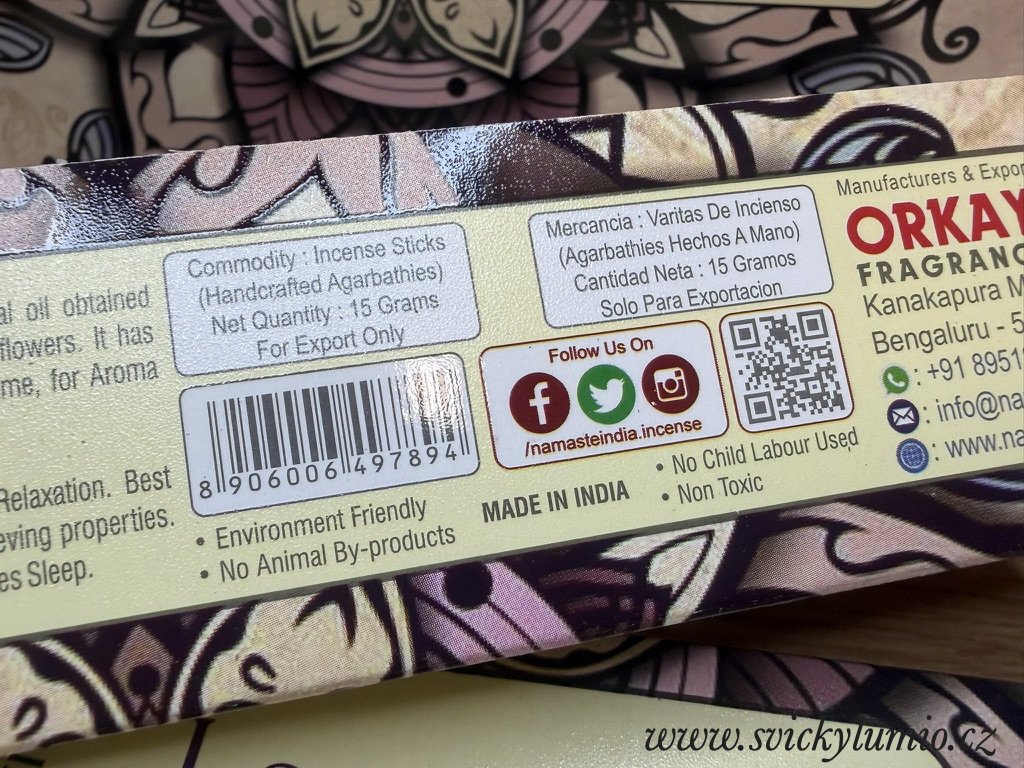 Ručně rolované vonné tyčinky NAMASTE INDIA
