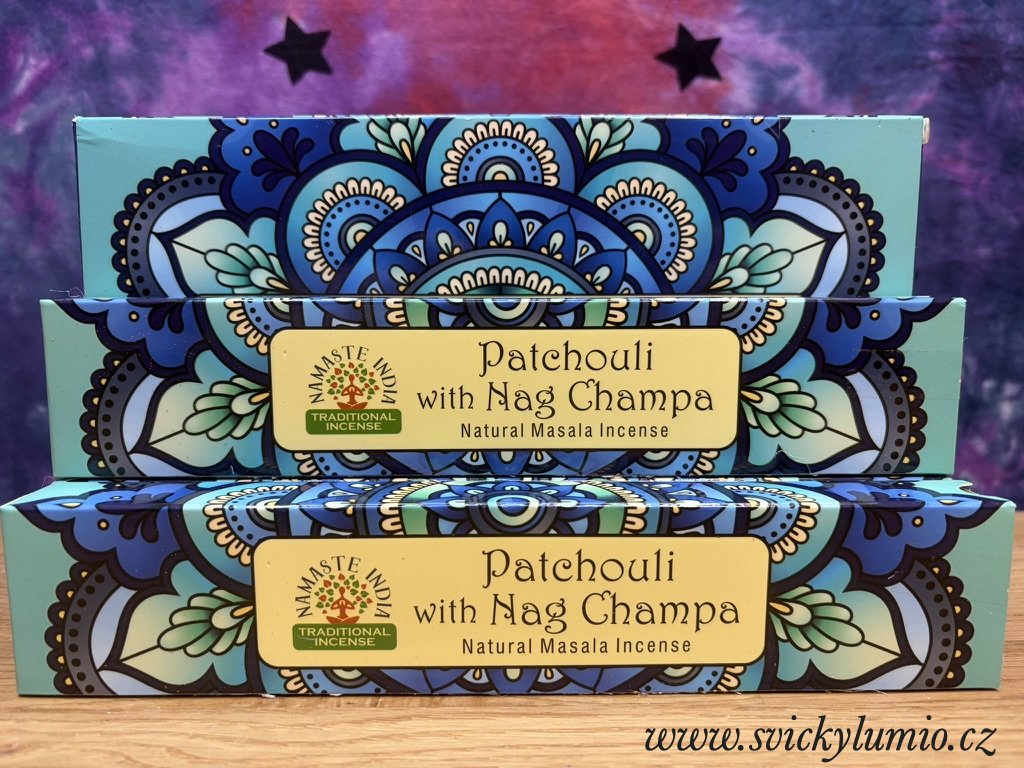 Vonné tyčinky PATCHOULI S NAG CHAMPA Namaste india 15g