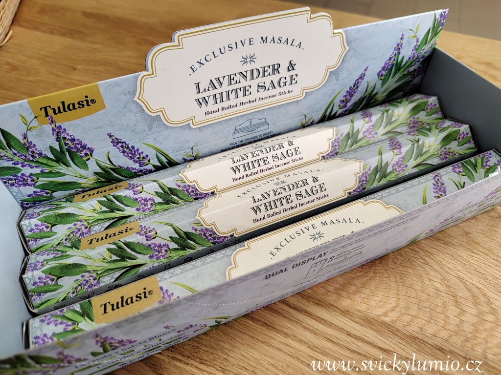 Vonné tyčinky WHITE SAGE + LAVENDER Tulasi 15g